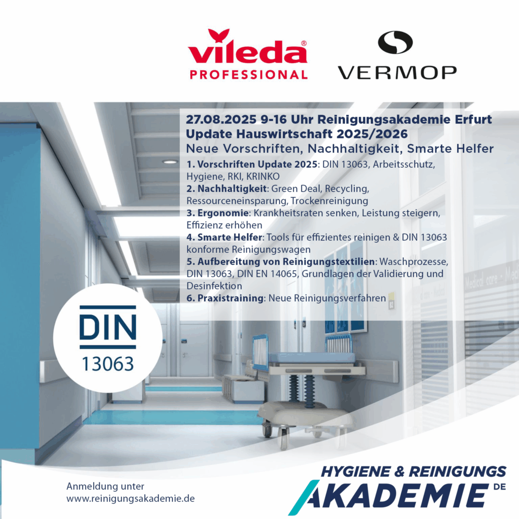 - Vorschriften Update 2025: DIN 13063, Arbeitsschutz, Hygiene, RKI, KRINKO